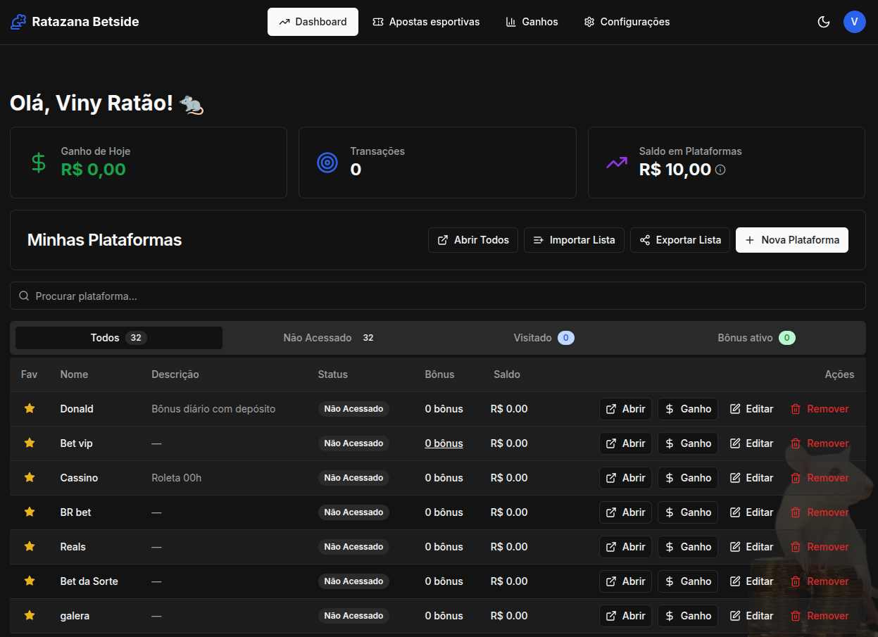 Junte-se a centenas de usuários que profissionalizaram sua gestão com o Ratazana Betside.